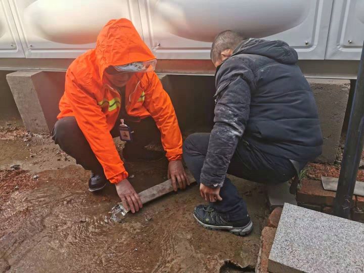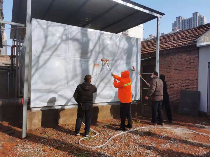 2021年2月后勤处开展二次供水消毒工作 根据有关要求,后勤处2021年2月22日对学校二次供水设施设备进行了全面消毒消杀清洁工作,确保师生饮用水安全! 徐州生物工程职业技术学院 水池清洗工作计划 一、人员组成 组长:张立逢 组员:杜雷 吴泉 刘勇 罗华生 汪安平 范长锁 冯仁志 周权权 彭益旺 李天普 白叙升 二、人员分工 1、后勤保障:范长锁(现场阀门开关,源水配送) 工作内容:开关水泵、配送源水、排水、现场照明、取送工具 2、高压清洗组:刘勇罗华生 周权权 李天普 工作内容:池壁、池底的高压清洗 3、除污消毒组:汪安平杜雷 吴泉彭益旺白叙升 工作内容:池内污物的清扫,水池的消毒 三、水池清洗方案 1、施工方案 (一)水池清洗时间:2021年2月22日,17点--24点 (二)水池清洗前的准备工作: (1)水工范长锁尽快排干水池,至地底留有20-30公分深的余水。 (2)电工李天普密切配合施工,现场照明电源摆放,保障照明亮度。 (3)清洗水池准备: 高压清洗机的安装、调试; 2台抽水泵的安装、调试; (4)水工冯仁志提供水源,因水池需要清水反复冲洗。 (5)范长锁、杜雷做好安全保卫,不让闲人靠近水池,以保证清洗安全。 2、水池清洗过程 (1)安排清洗、除污消毒人员2组共计10人 (2)关闭总阀,水工负责在清洗前将水位降至离池底30CM,同时关闭两座水池之间的连通阀,清洗人员用自带的抽水泵将水排出 (3)水位降至20CM时,高压清洗组进入,先用泵管将池壁清洗 (4)待地面露出时,除污组进入,清洗组负责地面的清洗,除污组负责后续积水、污水的清扫 (5)喷洒消毒,用含氯量300毫克/升的消毒药物喷于池壁与池底,停留30分钟,然后用清水冲洗干净,重复两次。 (6)水池清洗完毕后,打开源水开始注水 四、停水范围 1、2、3、4、5宿舍楼,1、2、3教学楼、团委、动物科技楼、食堂、超市、门面房、浴室、医务室、办公楼、东公厕、团委西公厕。 五、现场要求 1、现场安全由范长锁、杜雷负责,电源及配送源水由范长锁、白叙升负责 后勤服务处 2021年2月22日