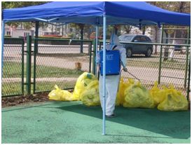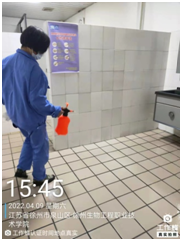 消杀过程中,后勤处组织物业消毒人员严格按照卫生消毒管理的标准规范操作,采用雾状喷洒的方法分别对学校教室、宿舍、食堂、操场等重点公共区域进行全区域立体式消毒灭菌,特别是对桌椅、门把手、楼道、洗手间、电梯轿厢、垃圾桶等关键区域、关键点实施密集消毒灭菌。
